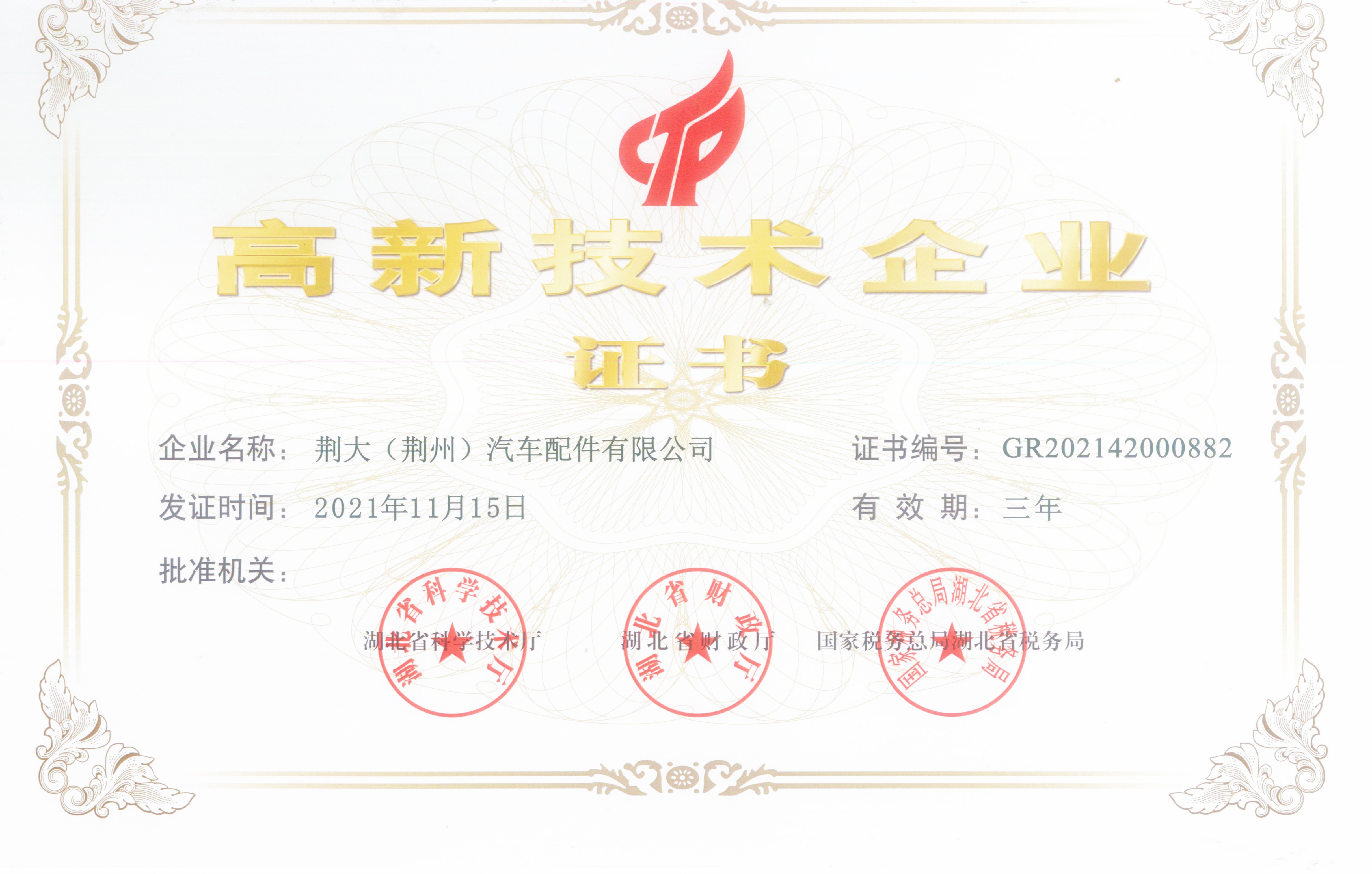 高新技術(shù)企業(yè)證書
